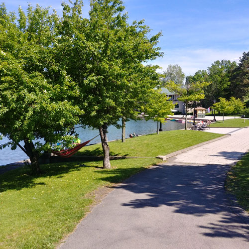 The walk around Hoyt Lake is just about a mile and a quarter. Some parts are concrete, paved surface, grass and dirt. As far back as the late 1800's the area has been used for running, jogging, school track practice, ice skating, boating, fishing, dog friendly park, weddings, wedding receptions, wedding pictures, special events and more. Although swimming is not allowed.