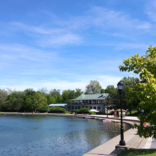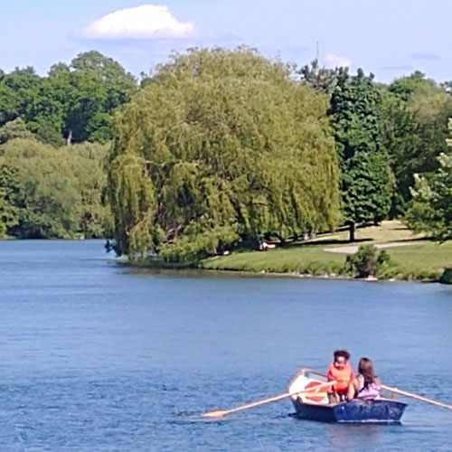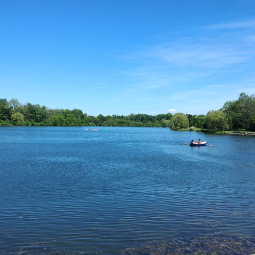 Hoyt Lake is part of Delaware Park. (an Olmstead park) It's directly across from the Buffalo Albright Knox Art Gallery just off of Elmwood Ave. Hoyt Lake is a man-made lake that is fed from natural wells, the sqajacuada Creek and pumped water. It's western edge extends to the Buffalo History Museum. Nationally recognized; it is named as one of the Great Places in America by the American Planning Association. Hoyt Lake is a dog friendly park in Buffalo New York.