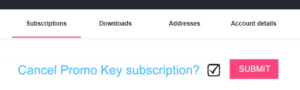 Cancel a subscription anytime. Log into your account then click “subscriptions” then click “Cancel subscription” or contact us here